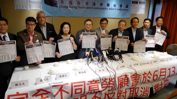 香港各界商會聯席舉行記者會,重申反對取消強積金對冲的立場。記者何家驊攝