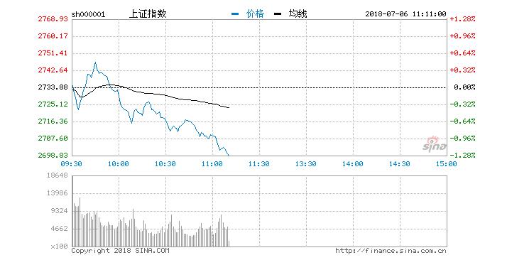 7月6日消息,沪深两市冲高回落,沪指跌幅较大,成交量持续下降,创指表现较强,盘中一度冲高涨1.66%,成交量也随分时图逐渐下降,乡村振兴、芯片、软件、水泥轮动发力,但未带动主板走势,三大股指齐齐下挫,沪指跌破2700点关口,截止发稿,沪指报2699.75,跌1.23%,创指报1524.56,跌0.52%。