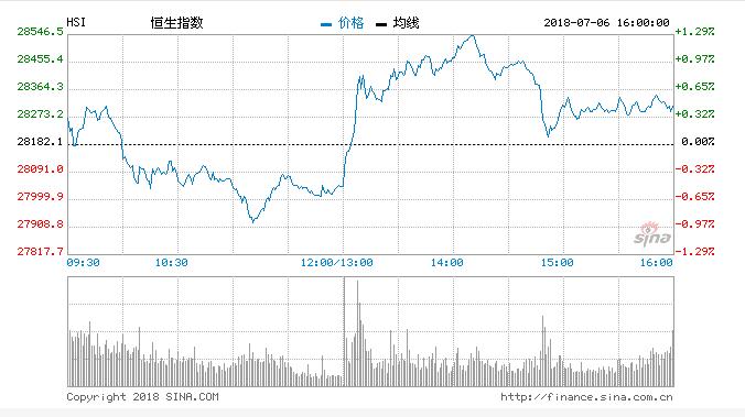 恒指今早高开0.26%,报28254点;大市早盘小幅上涨后即震荡下挫,跌幅逐步加深,午后逐步反转;盘中最低见27925点,最高报28554点。截至收盘,恒指涨0.47%,报28315点;国企指数涨0.14%,报10622点;红筹指数涨0.34%,报4230点;大市全天成交984亿港元。