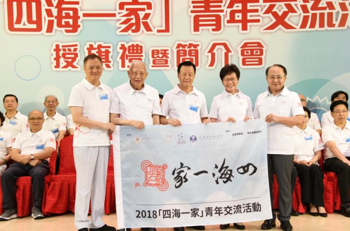 【香港商報网訊】記者何加祺報道:由新家園協會舉辦的2018「四海一家」青年交流活動昨日舉行授旗禮,全國政協副主席董建華、行政長官林鄭月娥、中聯辦主任王志民等出席。林鄭月娥在會上表示,特區政府十分支持青年到內地交流,一方面可加深他們了解內地最新發展和機遇,另一方面可促進兩地青年交流,及培養香港青年的國家觀念。今年有2000名青年分別前往陝西、天津及廣東進行體驗式交流,親身感受改革開放40年的內地發展。