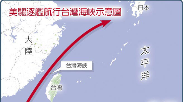 【香港商報网訊】國台辦主任劉結一昨日表示,一段時間以來美國一直在打台灣牌,台灣民眾應該認清美國的真實目的,千萬不要有人去幫助美國打台灣牌。據悉,台方7日主動公布消息稱,美國軍艦DDG-89馬斯廷號和DDG-65本浮尔德號共2艘驅逐艦當日上午由台灣南部海域航經台灣海峽,向東北航行。