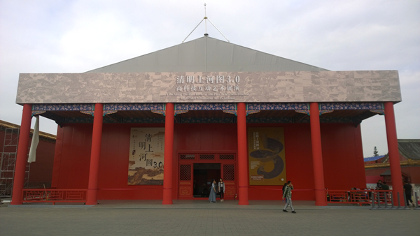 「清明上河圖3.0」高科技互動藝術展演位於故宮內的箭亭廣場。