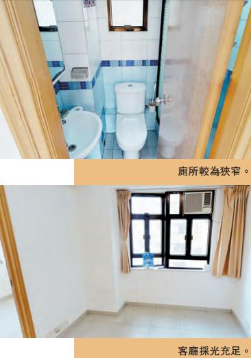 業主於1997年購入單位,升值倍半左右,全屋經過翻新,不過室內整體只屬於簡單裝修,保養情況屬於正常保養。客飯廳的窗戶剛好使得空氣相互對流。浴室空間較為狹窄,不過裝修方面浴缸、馬桶、洗水盆一應俱全。