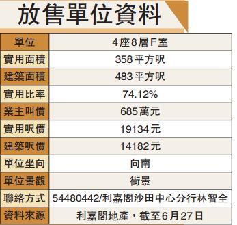 是次介紹的單位為該屋苑4座8層F室,業主叫價685萬元(截至6月27日),以實用面積358平方呎計,平均呎價約19134元。單位是2房間隔,無論是新婚夫婦還是三口之家的居住需求都能夠滿足。建築面積為483平方呎,實用比率為74.12%,比起同區其他屋苑為高。