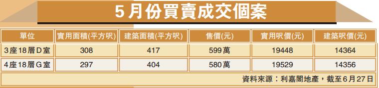 據利嘉閣銷售數據顯示,5月份偉華中心共有兩宗成交,面積都比較小,實用呎價平均接近2萬元。其中一個單位,實用面積308平方呎,成交價599萬元,實用呎價19448元。另外一宗成交,單位實用面積297平方呎,成交價580萬元,實用呎價19529元。