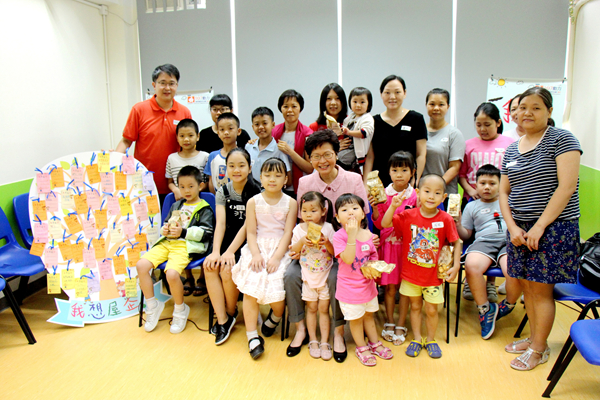 一批基層小朋友向林鄭月娥表達冀多建公屋的心聲,林鄭就送贈禮賓府特制曲奇餅給小朋友和家長。