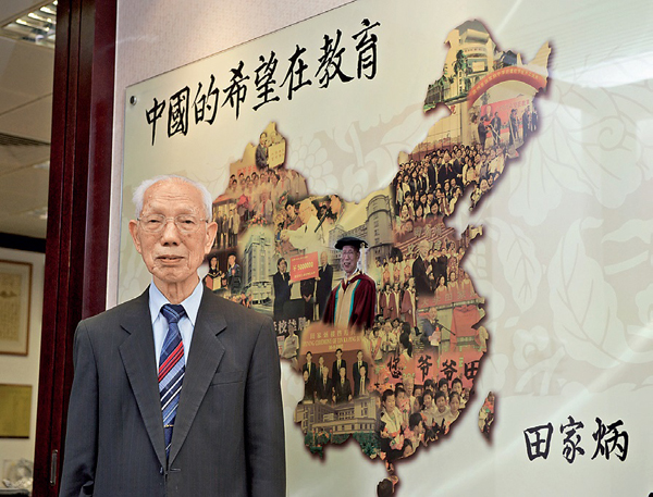 「中國的希望在教育」是田家炳創立田家炳基金會的理念。 理大《名道.33薈》圖片