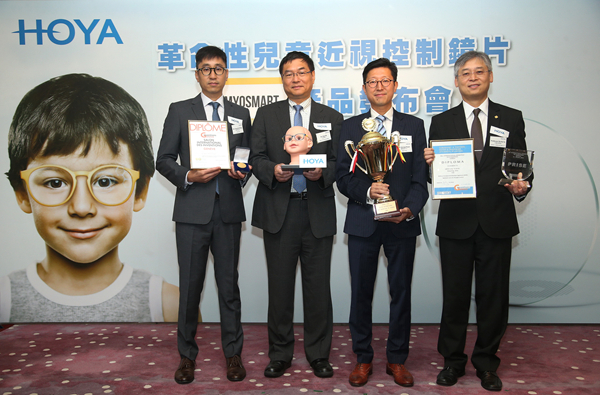 MyoSmart早前於瑞士日內瓦舉行的第46屆國際發明展中贏得全場總冠軍等3項大獎。這款全新研發的控制視力鏡片本周四起於香港率先開售,定價3480元。MyoSmart研發者之一、豪雅光學技術研發部專家祁華博士表示,鏡片為非入侵性,與普通眼鏡無異,比起現時市場上其他產品更為安全,經過2年的臨床實驗證實成效高達59%,當中以8至13歲小孩因眼球增長速度較快而成效最明顯。註冊視光師鄧子誠先生則指,市場現有方案即使成效高,但安全問題存疑,甚至有機會令眼睛發炎,而新產品能成為保護兒童視力的第一防線。