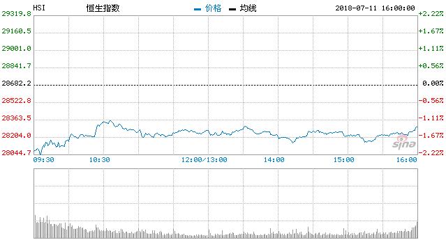 【香港商报网讯】周三早间全球市场避险情绪急剧升温,影响港股市场情绪。今日开盘,恒指重挫2.33%,此后跌幅有所收窄。午后尾盘,恒指跌幅进一步收窄。截至收盘,恒指跌1.29%,报28311.69点;国企指数跌1.54%,报10658.26点;红筹指数跌1.15%,报4272.5点。大市成交959.34亿港元。
