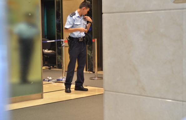 血案現場位於觀塘巧明街113號富利廣場地下電梯大堂,昨晨8時48分,一名戴口罩男子持刀闖入上址,向一名正進入升降機的姓葉男子(60歲)施襲,葉某右腳被斬傷,血流如注。此時,一名姓蘇男保安員(56歲)見狀即上前喝止,并嘗試拉走葉某,混亂間蘇某右臂被刀手斬傷,與此同時,另一名姓呂女子(54歲)則被撞跌撼傷頭,并受驚不適。