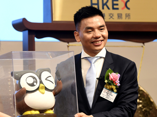 內地移動端直播平台映客互娛董事長奉佑生昨日出席挂牌儀式。中通社