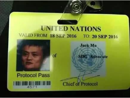 为马云颁发联合国红色特别通行证。持有人可以在非国籍所在国拥有外交豁免权及在免签证、快速通关、安检等方面享有照顾。