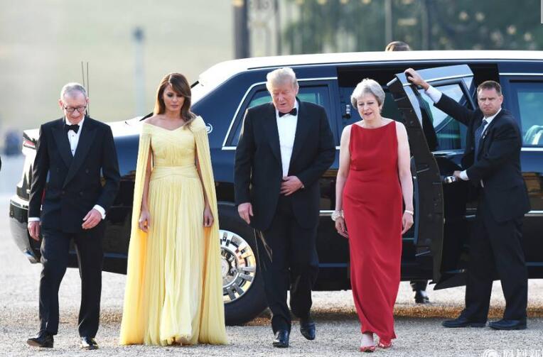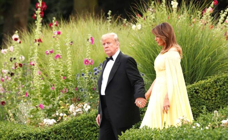 7月13日报道,当地时间12日傍晚,特朗普与夫人梅拉尼娅离开美国驻英大使馆,乘直升机抵达了布莱尼姆宫。英国首相特里萨•梅和她的丈夫菲利普在外迎接。特朗普本次将进行为期两天的工作访问,这也是他就任以来首次访英。图为特朗普夫妇离开驻英大使馆前往布莱尼姆宫。