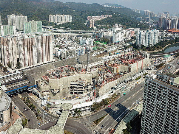 动工中的大围站上盖發展項目因月臺出現沉降而暫停。