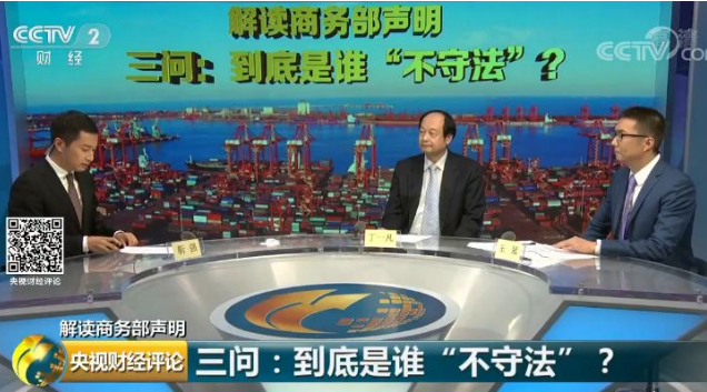 15日晚《央视财经评论》推出“解读商务部声明”系列评论第三问:到底是谁“不守法”?邀请清华大学国家战略研究院资深研究员丁一凡和央广财经评论员王冠做客演播室,对此进行深度解析。
