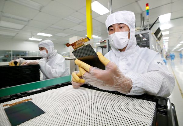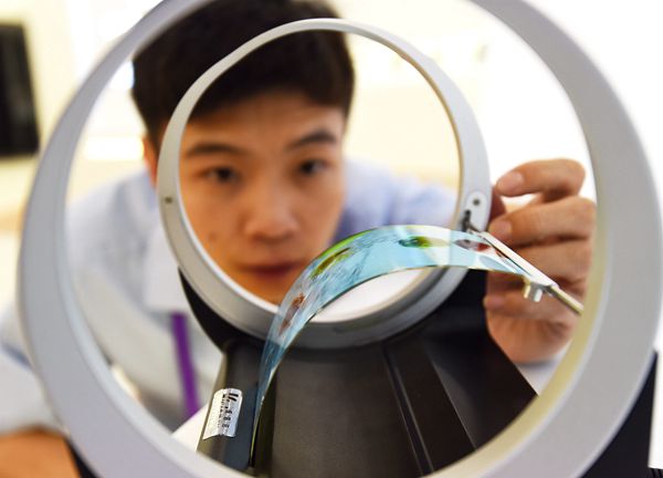 图为廊坊市霸州经济开发区高新技术产业园维信诺公司,工作人员对半成品进行检查。新华社