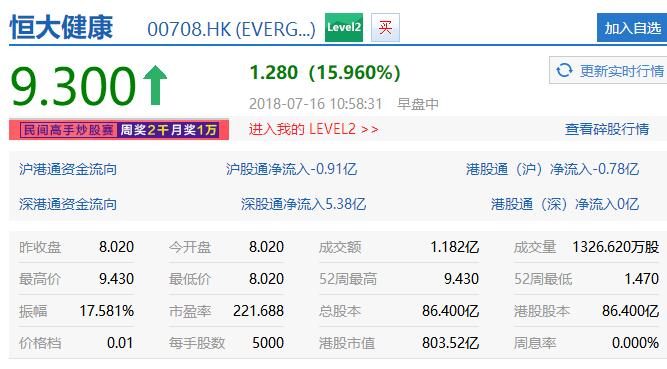 许家印探访FF美国工厂,恒大健康涨逾15%,股价续创历史新高。