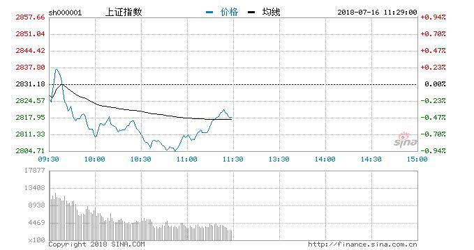 7月16日,沪深两市小幅低开,早盘地产股走弱,银行、保险等金融板块表现低迷,上证50指数盘中跌逾1%,沪指盘初短暂拉升后快速回落,一度下挫逼近2800点,午市休盘前跌幅有所收窄。通信等科技类板块走势较强,创业板指盘中成功翻红。盘面上,多数板块飘绿,通信、军工、休闲服务涨幅居前。题材概念方面,边缘计算、国产软件等领涨,5G、芯片概念等均表现活跃。两市成交量较上一交易日略有缩量。