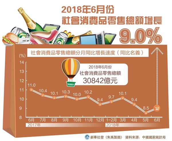 統計局公布的數據顯示,經濟的三駕馬車中,消費增速有加快跡象。上半年,中國經濟結構繼續優化。產業結構方面,第三產業增加值增速比第二產業快1.5個百分點,占GDP的54.3%,比上年同期提高0.3個百分點;需求結構方面,最終消費支出對經濟增長的貢獻率為78.5%。毛盛勇分析指出,從主要數據來看,內需是經濟增長的決定性力量,其中消費是頂梁柱。數據顯示,上半年,全國居民人均消費支出9609元,扣除價格因素實際增長6.7%;全國居民人均可支配收入同比名義增長8.7%,扣除價格因素實際增長6.6%。毛盛勇預計,下半年,消費有條件延續平穩較快的增長態勢,主要由於消費本身具有剛性增長的基礎和條件。他指出,中國經濟在發展階段中,消費結構升級的步伐只會加快,不會停下。另外,近年來,中國加大進口規模,推進高水平對外開放,促進了整個市場消費的活躍和供給。