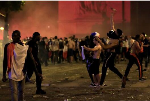 据英国卫报消息,大约有上百万人挤在巴黎香榭丽舍大道庆祝法国队夺冠。但当天晚上11点,约30人向位于香榭丽舍大道北部的商店橱窗投掷石头。面对失控场景,防暴警察不得不用警棍、催泪瓦斯来保持人群秩序。