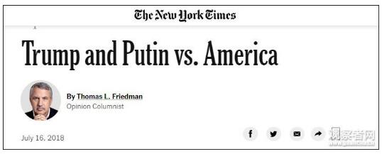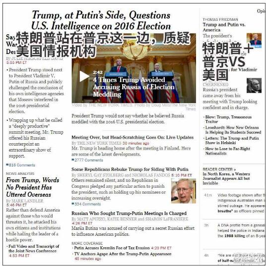 接下来是《纽约时报》,同样的配方,同样的味道:“特朗普,站在普京这边,质疑美国情报机构对2016年大选的调查。”