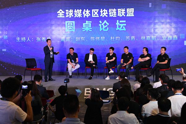 全球媒體區塊鏈峰會圓桌論壇環節。 記者 馮俊文攝