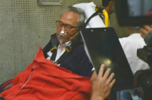 曾蔭權聞判稱身体不適 閉眼戴氧氣罩送院