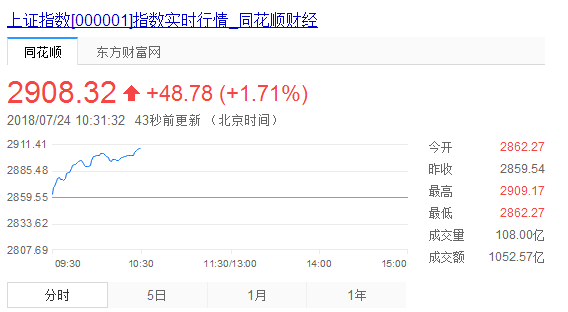 沪指重返2900点,盘面上,基建板块掀涨停潮,成都路桥等逾10股涨停,钢铁、水泥、高速公路等板块也表现出色。截止发稿,沪指上涨1.53%,创业板指上涨0.27%。