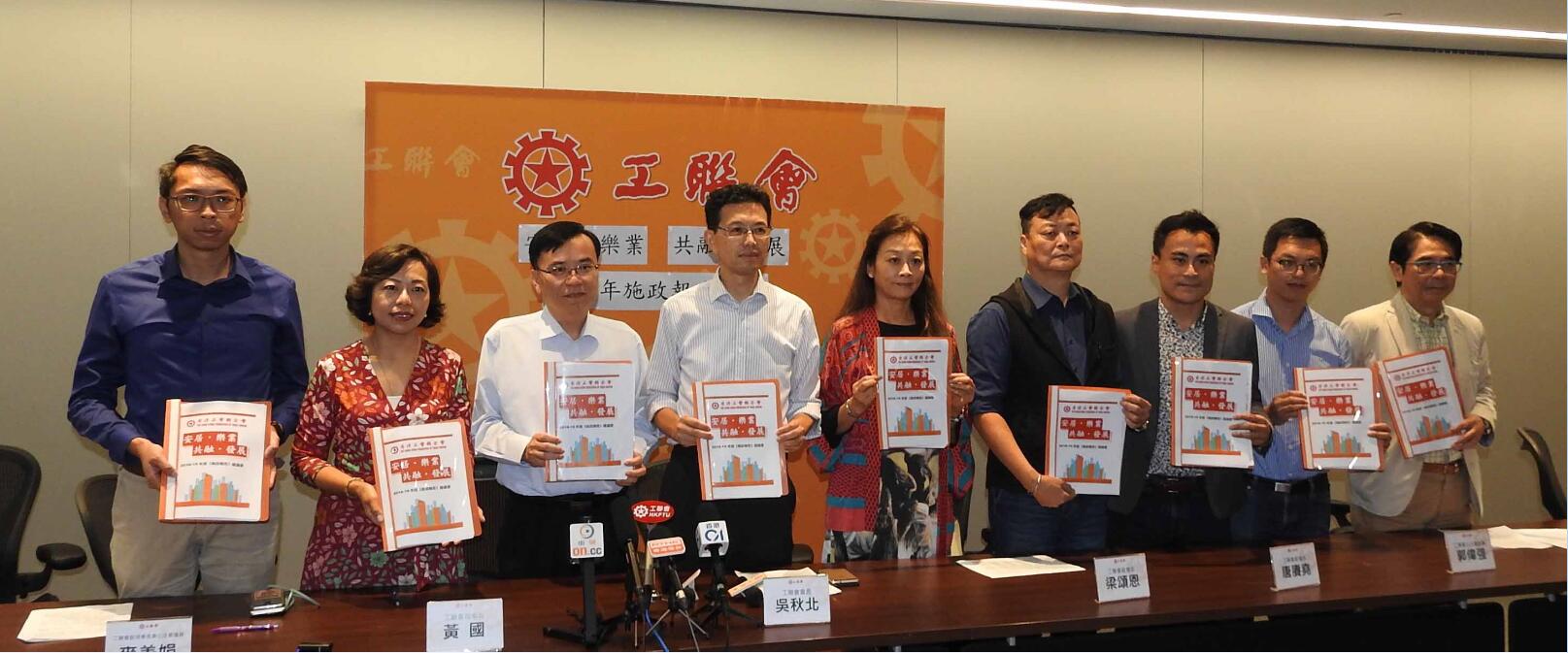 土地房屋方面,工聯建議多元開拓土地供應,包括在維港以外的地方填海、加快收回棕地及私人遊樂場土地等;建議住宅供應的公、私營比例,應由現時的「六四比」提升至「七三比」,以縮短公屋輪候時間;建議引入政策限制境外人士購買住宅物業;買家印花稅應由15%增加至30%至50%;建議開徵資產增值稅,期望能遏止炒風。