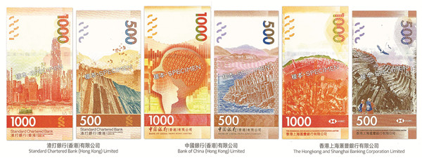 金管局更首次統一各銀行在相同面額鈔票的設計主題,包括展現香港作為金融中心地位的1000元,以香港地質公園為主題的500元,承傳粵劇藝術文化的100元,描繪在港棲息蝴蝶的50元,以及代表港式點心及飲茶文化的20元,皆可反映香港特色。
