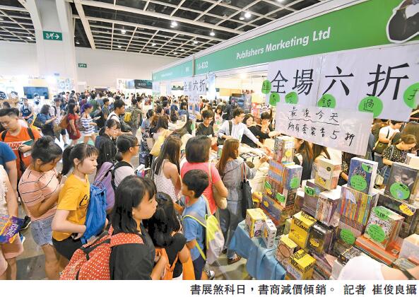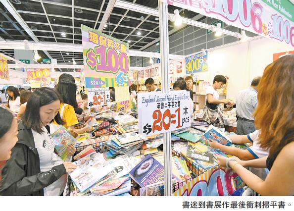 【香港商報网訊】記者葉佩瑜報道:為期7日的香港書展昨午收爐。統計總入場人次高達104萬,創出歷屆新高。不過,旺丁不一定旺財,大部分參展商都透露今年銷售額較去年少或差不多,即使銷情有上升亦僅屬「微升」;有不少參展商在最后一日「割價」,推出全場六折、30元兩本補充練習等優惠,實行「要錢不要書」,刺激收爐前銷情。