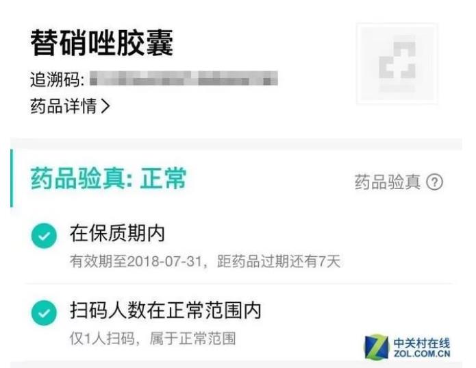 笔者第一时间用支付宝扫描了手边的药盒,立刻出现了下图信息。其中体现了3项关键信息:1.药品验真;2.保质期;3.扫码人数。可以说十分快捷并且准确。