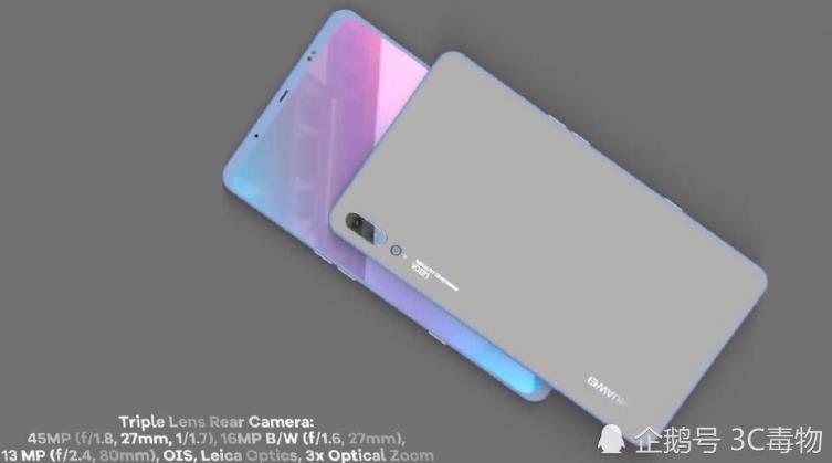 华为P20Pro采用的后置三镜头设计一发布就震撼了全场,谁都没有想到华为P20Pro会采用后置三镜头的设计方式。那么下一代的华为P30Pro会采用什么样的设计呢?外媒给出了一组华为P30Pro的概念设计图,在这组概念设计图中华为P30Pro取消了刘海屏设计,而采用了屏占比更高的全面屏设计。