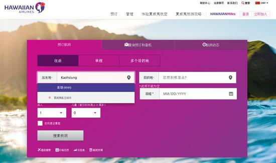 美国夏威夷航空官网已经删除了“台湾”字样