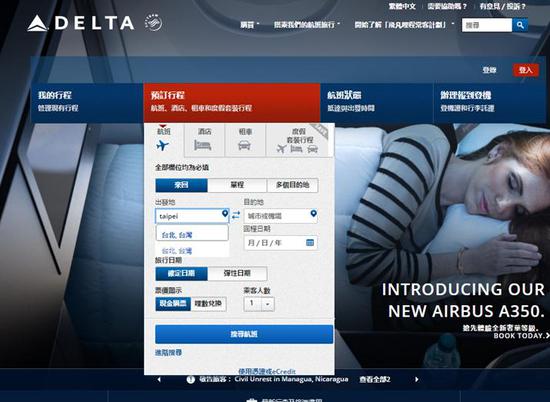 美国航空官网25日已经删除了“台湾”字样,仅保留了城市名与机场名