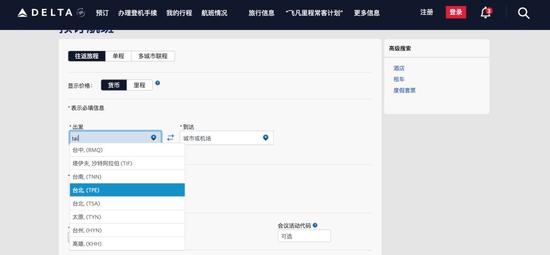经验证,发现在美航官网出发地和目的地输入“Taipei”后,只显示台北桃园机场和台北松山机场,机场描述没有加“台湾”。此前,在机场描述后有“台湾”字样。不过,在出发地和目的地下拉列表中,仍有“台湾”选项。