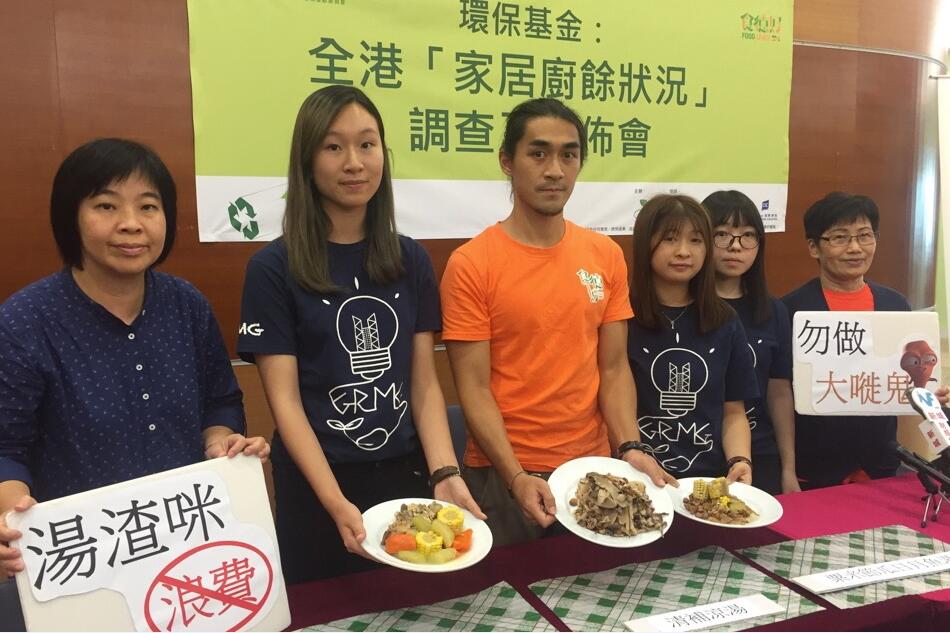 調查發現,受訪者家中廚餘主要來源是湯渣,佔41.4%;平均每星期煲湯2.5次,按全港255萬家庭計,港人日煲湯90萬次,若按每次湯渣重500克推算,即每日家庭湯渣重量達450公噸,佔每日家居廚餘丟棄量近20%。調查亦發現,大部分受訪者會吃不完或直接丟棄湯渣。