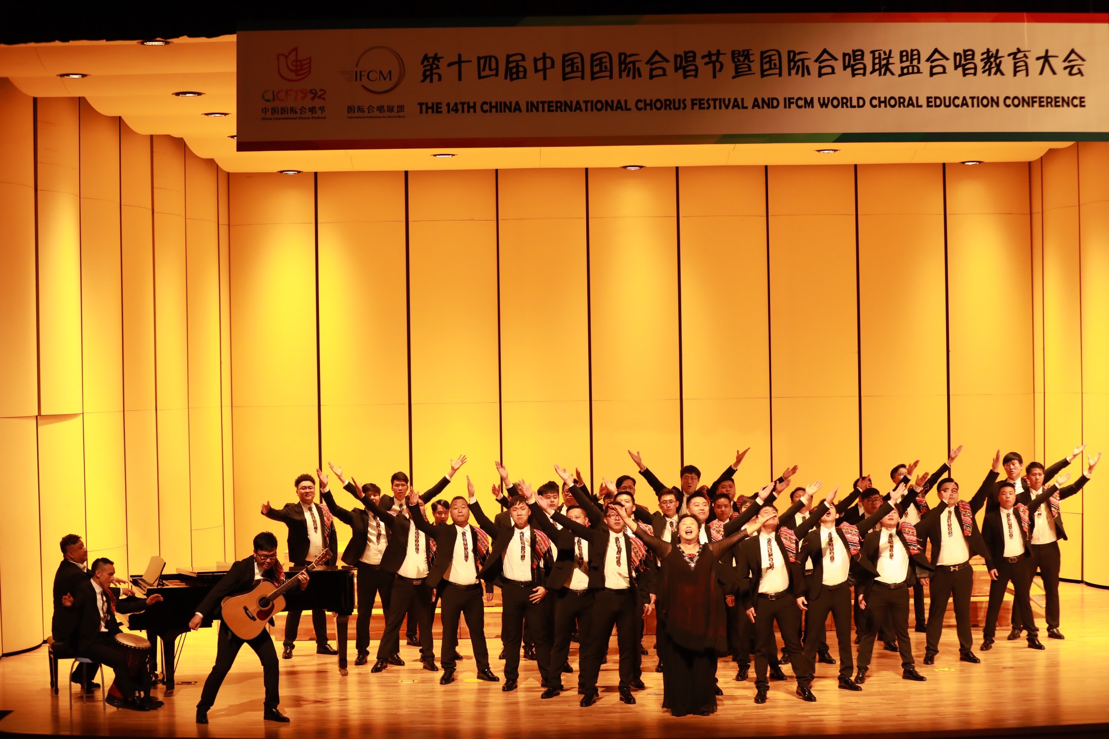 【香港商报网讯】记者王娜、通讯员吕丹红报道:日前,第十四届中国国际合唱节暨国际合唱联盟合唱教育大会颁奖典礼在北京九华山庄隆重举行。大浪羊台山艺术团男声合唱团在中国合唱的最高舞台上大放异彩,以优美的和声,超强的感染力再次征服国内外评委,荣获第十四届中国国际合唱节“A级合唱团”称号。