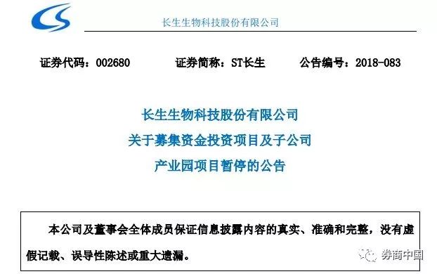 7月30日晚间,ST长生连发4份公告。公告提到,公司及全部子公司名下34个银行账户全部被冻结,募集资金投资项目及子公司产业园项目被暂停。公告中还提到,公司18人被公安机关提请批准逮捕,其中包含董事、高级管理人员分别是高俊芳(董事长)、张晶(董事)、张友奎、刘景晔、蒋强华、赵志伟。