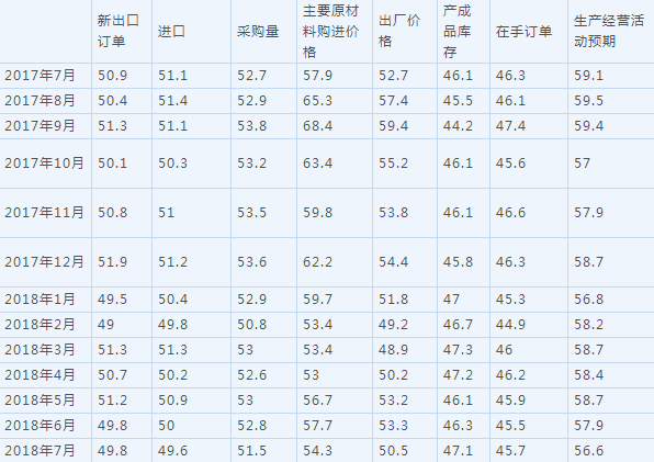 2018年7月中国采购经理指数运行情况