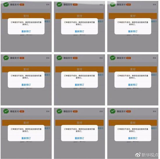 孔先生尝试了近百次的订票操作,无一成功,图为部分未成功订单截图。(图由受访者提供)