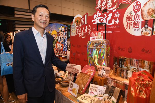 鴻星集團推出只限首日,限售100盒的原隻乾鮑系列即飲湯包。鴻星企業傳訊經理魏利明介紹,湯包系列一直都甚受歡迎,因香港人太忙,沒時間煲湯,即飲湯包經高溫處理,只要加熱5分鐘即可飲用,最適合補身。冠華食品市場與銷售經理馬慧英稱,今年是冠華成立60周年,推出1蚊涼果優惠,包括:話梅王、舊陳皮、檸檬王與飛機欖等;她介紹,每個包裝都有一個故事,希望將品牌傳承的堅持推廣開去。