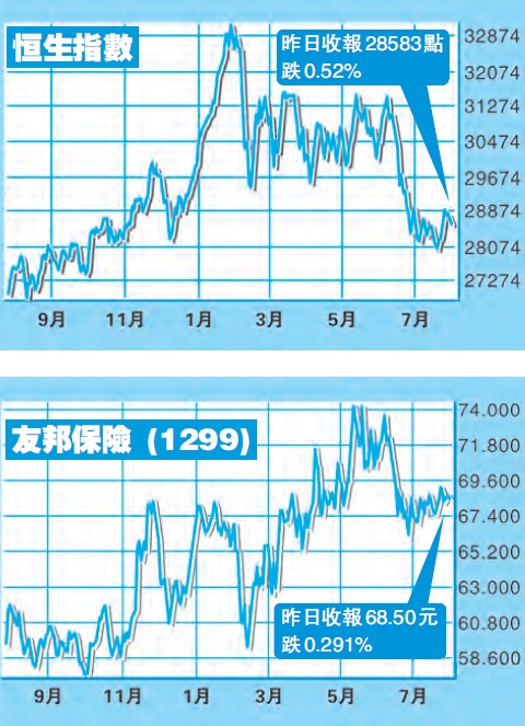 上周三港股繼續強勢,科技股、地產股及濠賭股升幅顯著,收升258點,恒指四連升累漲910點(3.25%)。上周三晚歐美達成協議,美歐貿易戰暫停,刺激美股繼續造好。港股上周四早段一度跟隨外圍高開162點,重上二萬九關,但人民幣仍繼續波動,港股最終倒跌139點,四連升斷纜。上周四Facebook晚急瀉19%,亞馬遜亦跌3%,令騰訊(700)等一眾科技股亦受壓,加上人民幣疲弱,港股上周五早段一度挫208點,低見28572點,惟午後部分地產股反彈,港股最終升23點,收報28804點。