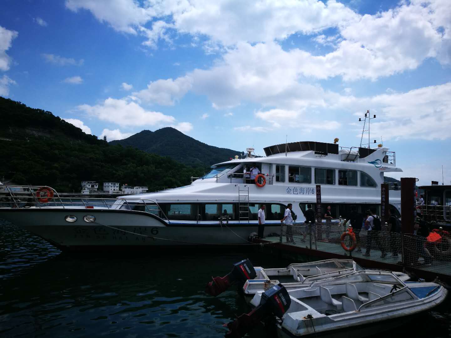 从深圳盐田金色海岸码头出发的载客渡轮。