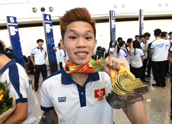 參加第12屆世界跳繩錦標賽的香港代表隊昨日凱旋而歸,大批市民到場接機,人潮可謂迫爆機場,其中獲15歲或以上男子組個人項目冠軍的劉盼睎(20歲)說,之前曾與隊友說過,一起包辦三甲,沒想到今次真的能夠夢想成真,絕對是預料之外,獲獎時大家也很激動。他說,未來希望在跳繩方面繼續發展,想做全職教練推廣跳繩運動,又認為香港的實力一直有提升。