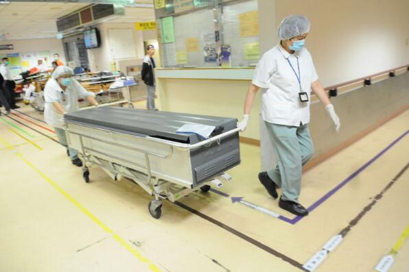 兇案發生後,電梯大堂遺下血漬。資料圖片