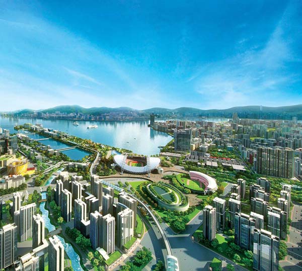 從啟德新區模擬圖可見,九龍灣商業區未來規劃完善。