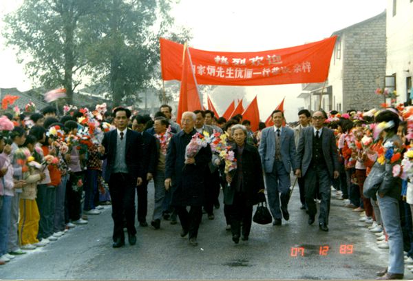 田家炳於1989年返回闊別43年的家鄉,獲鄉民熱烈歡迎。