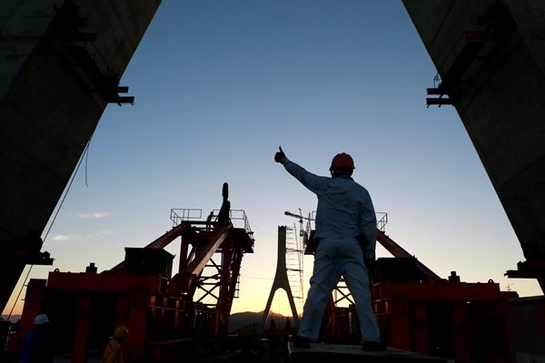 浙江省舟山市富士門大橋的建築工地。 路透社