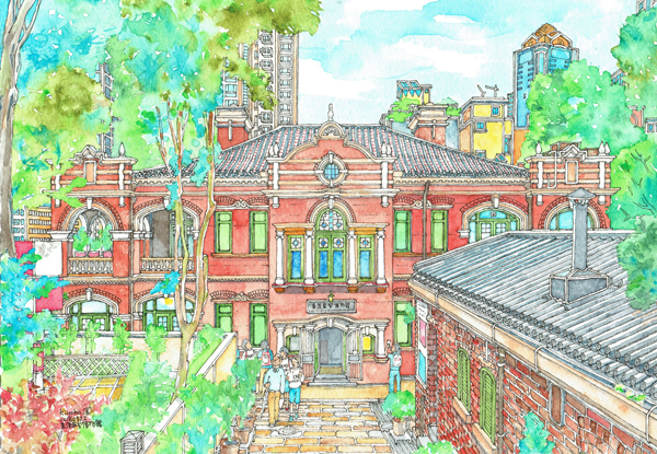 山口潔子作品,《香港醫學博物館》,2018年。這是展覽中唯一一幅繪畫香港法定古蹟的作品。